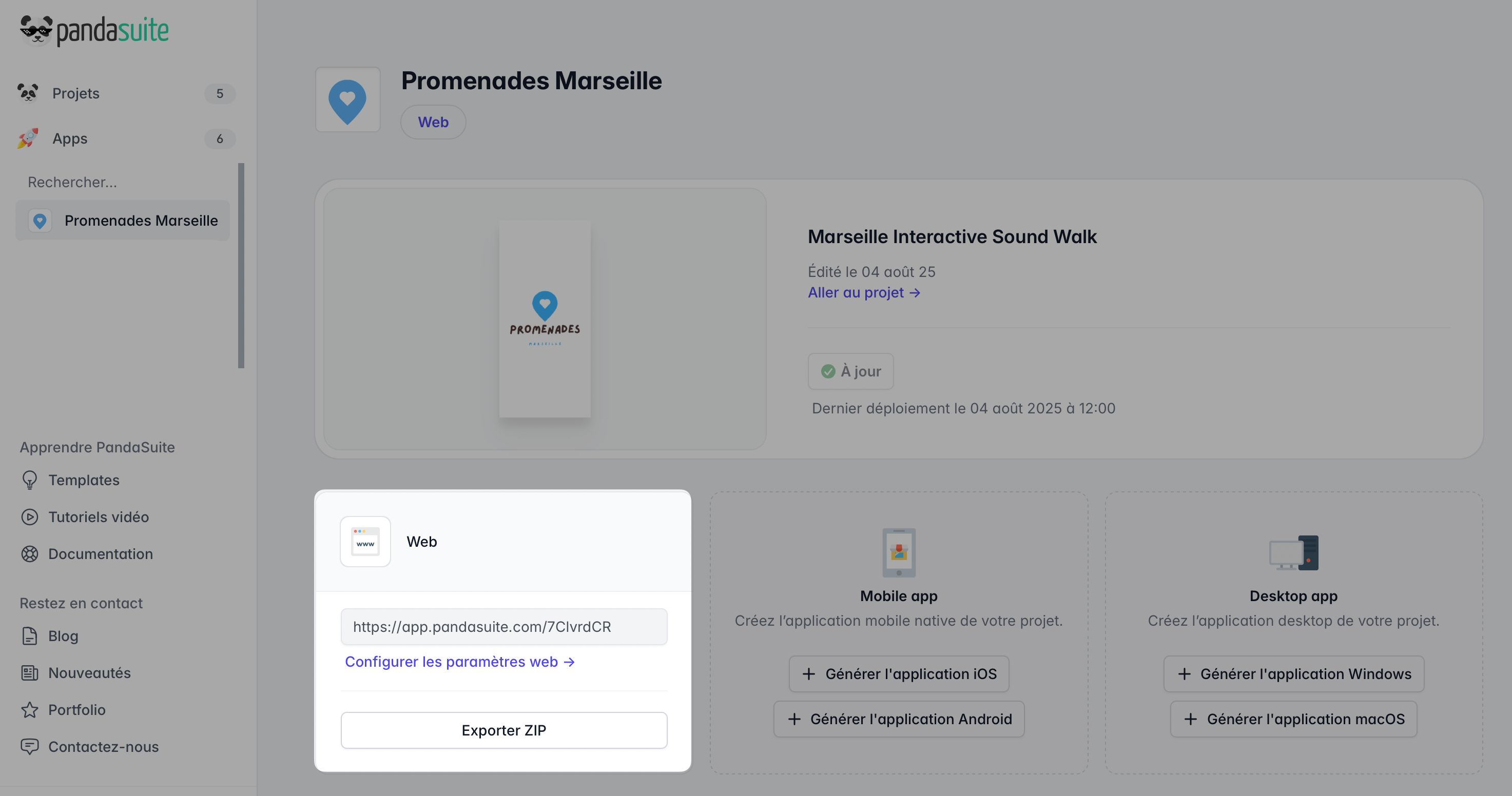 Publishing in web format is the fastest way to make your PandaSuite project accessible from any browser and any device.